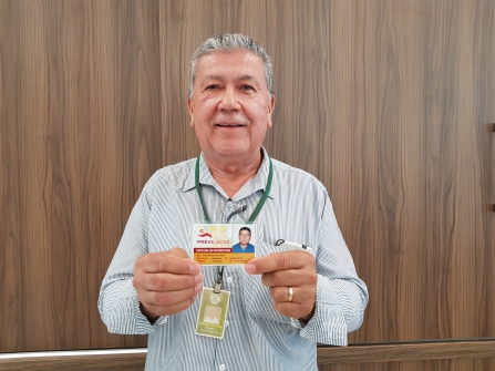 Na manhã desta segunda-feira (09/09), o PREVILUCAS realizou mais uma entrega da carteirinha de aposentado na recepção da Prefeitura Municipal durante a oração semanal. José Carlos de Oliveira, carinho