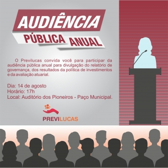 O PREVILUCAS convida você a participar da audiência pública anual para divulgação do relatório de governança, dos resultados da política de investimentos e da avaliação atuarial 2018.