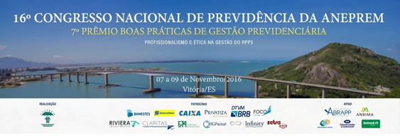 O 16° Congresso Nacional de Previdência da Aneprem, que acontecerá nos dias 7, 8 e 9 de novembro, no Centro de Convenções de Vitória, e terá como tema central a Profissionalização e a Ética no Regime