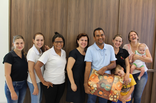 Em comemoração ao dia dos pais, a equipe do Previlucas se reuniu e presenteou o único homem e pai da equipe, o contador Adércio Nogueira Neponoceno