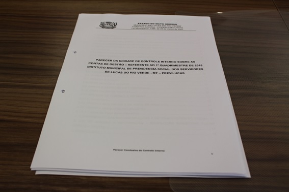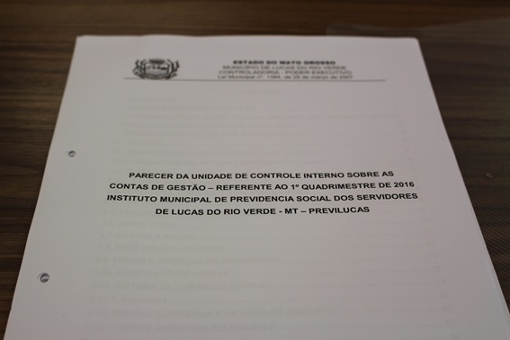 Em 30 de maio de 2016 o Controle Interno Municipal emitiu Parecer favorável as Contas de Gestão referente ao 1º Quadrimestre de 2016 do Instituto Municipal de Previdência Social dos Servidores de Lucas do Rio Verde – MT “PREVILUCAS”.