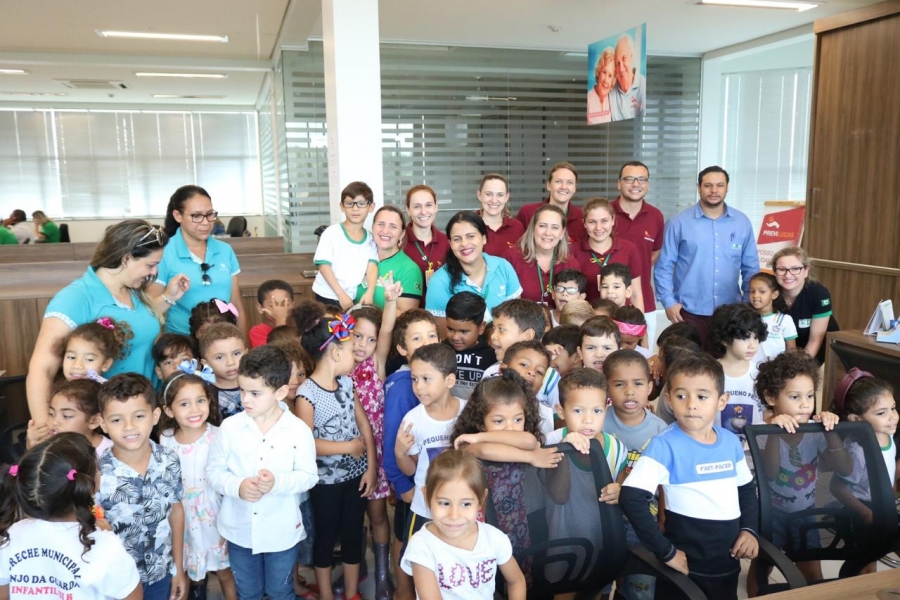 Hoje (26), teve visita das crianças do Infantil IV, do Centro de Educação Infantil Pequeno Príncipe, no PREVILUCAS. Os pequenos estão aprendendo sobre profissões e vieram até o Paço Municipal para conhecer os setores e como cada um trabalha.
