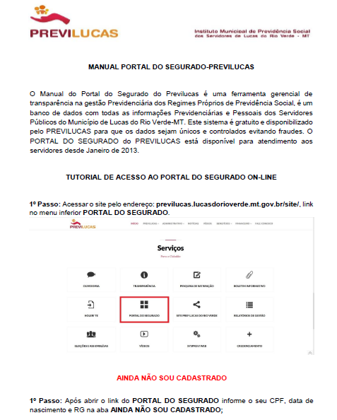 Para ter acesso ao seu comprovante, basta informar o CPF, RG e a data de nascimento, conforme Manual do Portal do Segurado - PREVILUCAS.