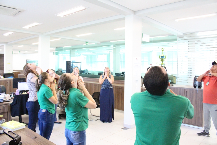 Com o auxílio do terapeuta ocupacional Sr. Ramão Américo Godoy e do Psicólogo Sr. Edson Carlos Silva, os servidores tiveram 20 minutos de exercícios que previnem as lesões por esforço repetitivo – LER.