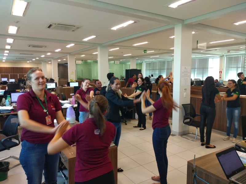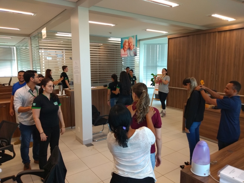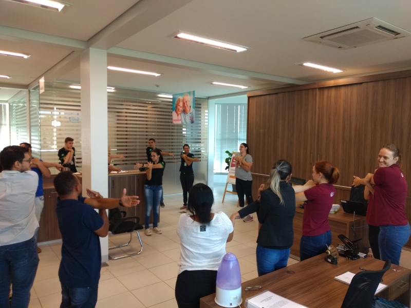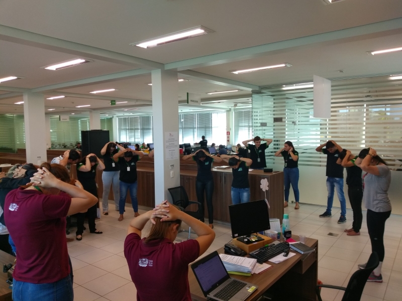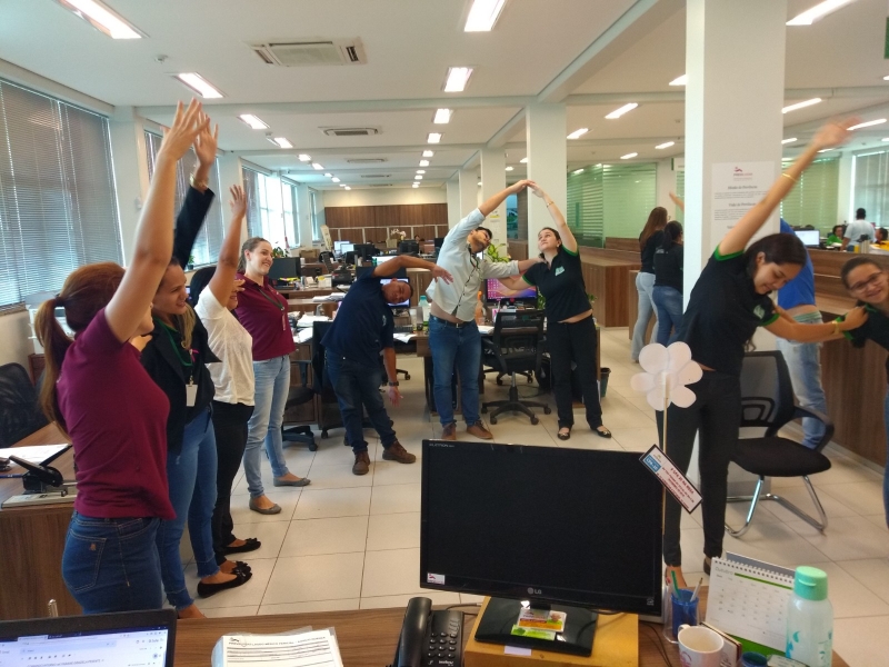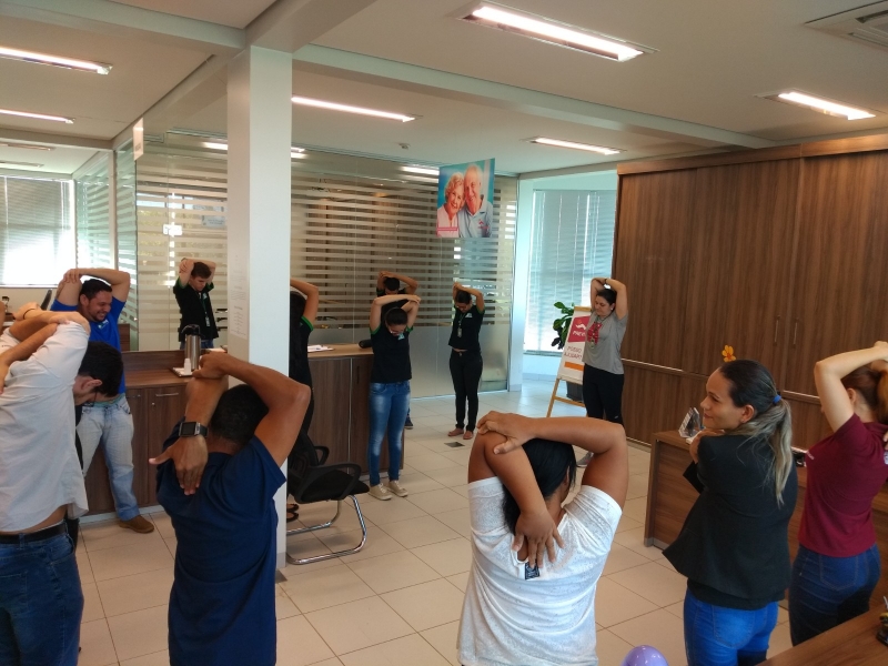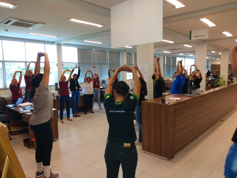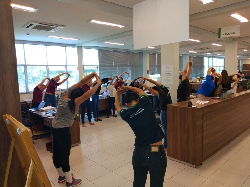 Com o auxílio da terapeuta ocupacional, Juliane Moreira Naves, os servidores tiveram 15 minutos de exercícios que previnem as lesões por esforço repetitivo – LER.