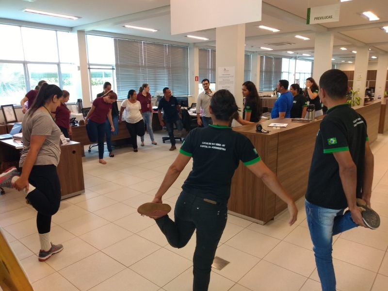 Nesta sexta-feira (11), os servidores do PREVILUCAS participaram de ginástica laboral em parceria com a Secretaria de Saúde. Essa atividade faz parte do programa de promoção da saúde e qualidade de vida dos servidores, regulamentada pela portaria do PREVILUCAS n° 380/2016.